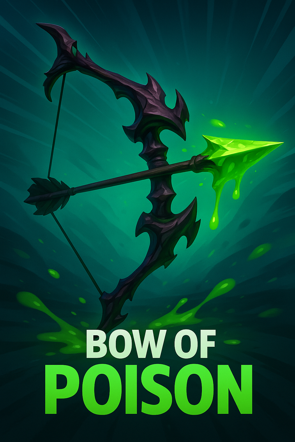 A dynamic 3D illustration of a poison bow, featuring vivid green accents and a striking design. The background showcases a smooth gradient, enhancing the visual appeal.