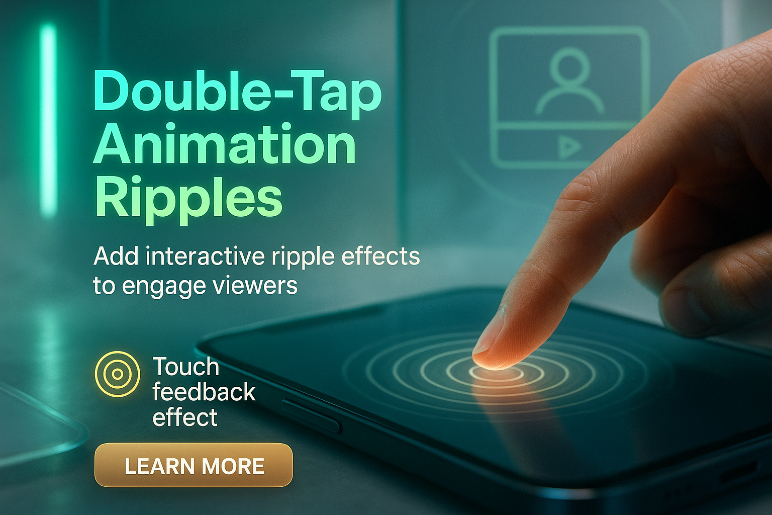 /Collection: /by davooda/Type: PNG/Engaging promotional graphic showcasing double-tap animation effects for mobile devices. The modern design appeals to digital marketers and app developers.