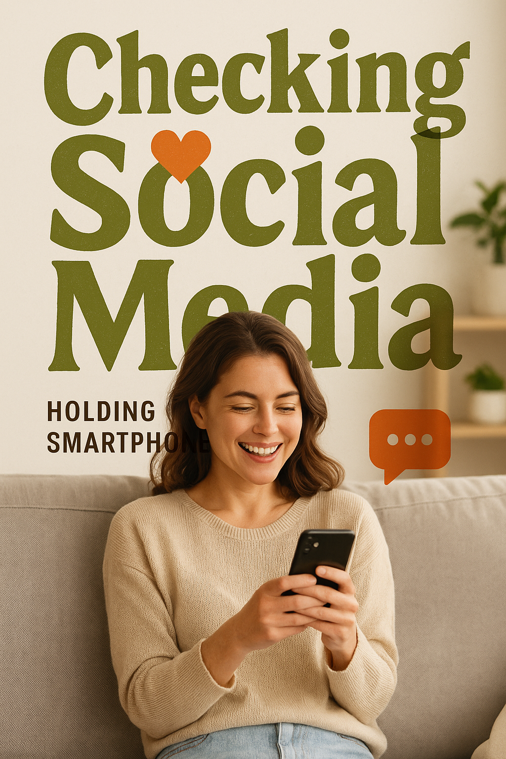 A visually appealing image showcasing a young woman enjoying social media on her smartphone, perfect for digital marketing and lifestyle content.