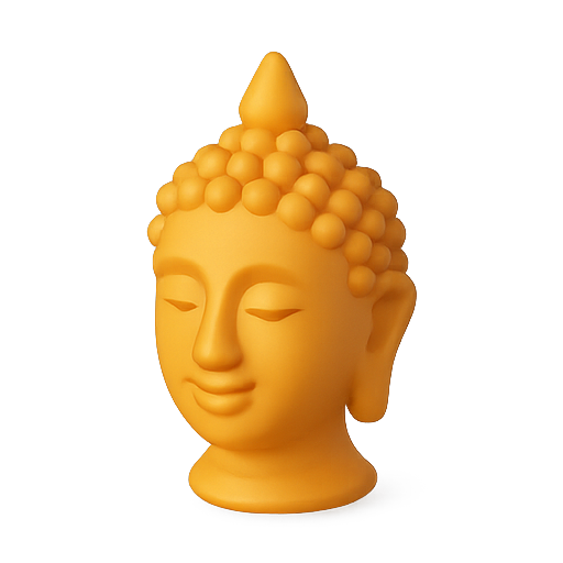A modern, stylized representation of a Buddha head in a vibrant yellow color. This digital artwork features smooth textures and simple shapes, making it suitable for spiritual or artistic themes.