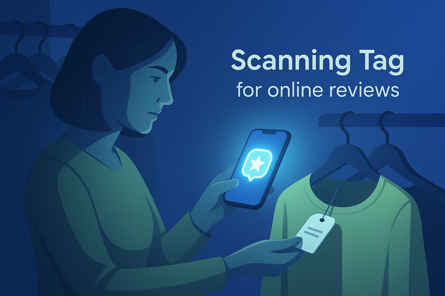 Woman Scanning Clothing Tag for Online Reviews in Store