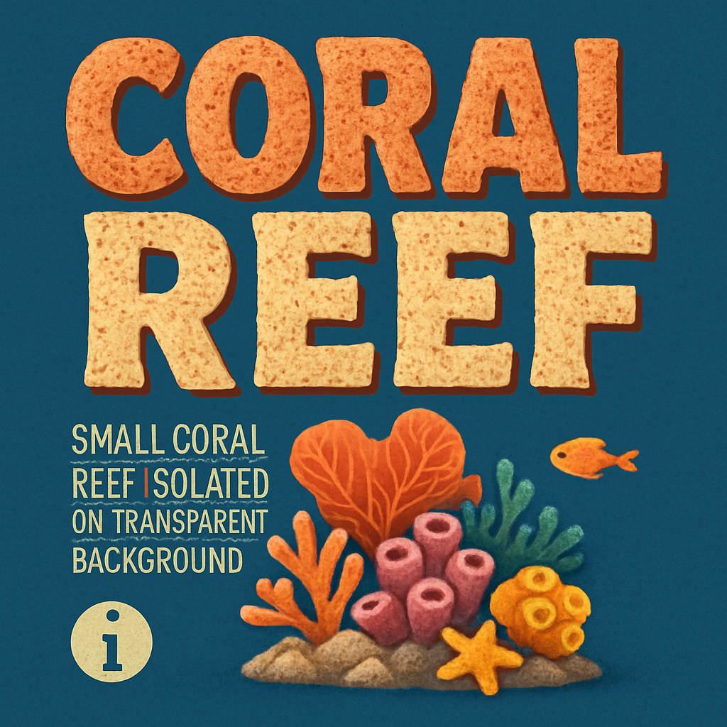 /Collection: /by davooda/Type: PNG/Vibrant illustration of a coral reef featuring assorted coral shapes and a fish, set against a solid background, ideal for educational materials or marine-themed projects.