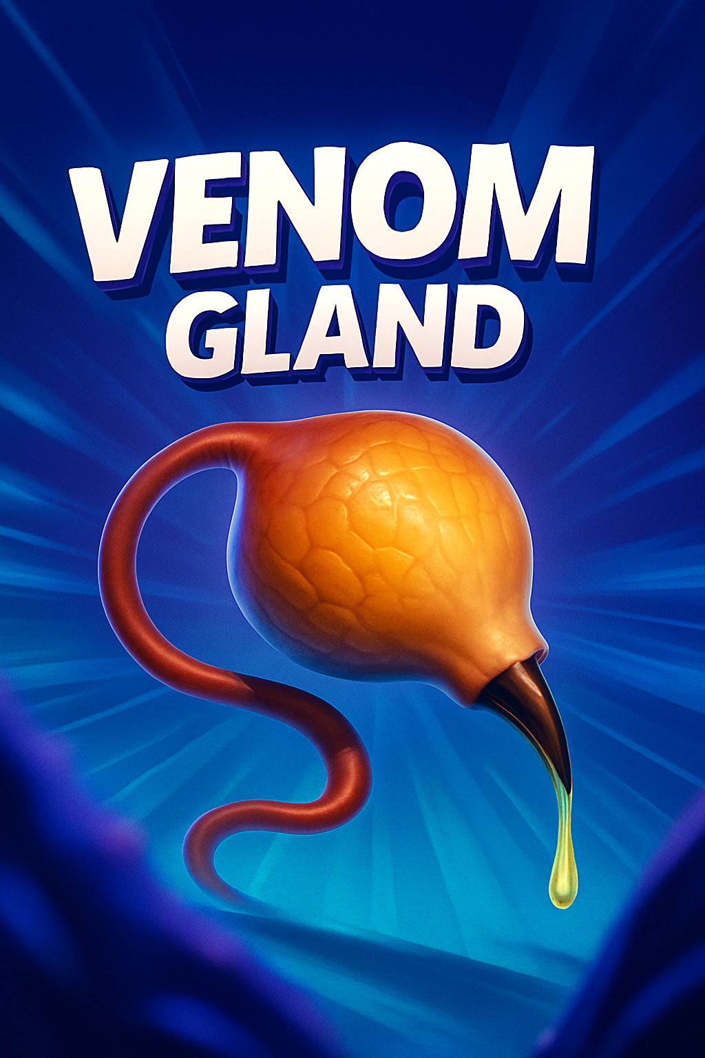 A vibrant and dynamic illustration showcasing a venom gland, designed with a smooth gradient background and engaging visual elements. The gland is depicted in rich colors with a focus on realism.