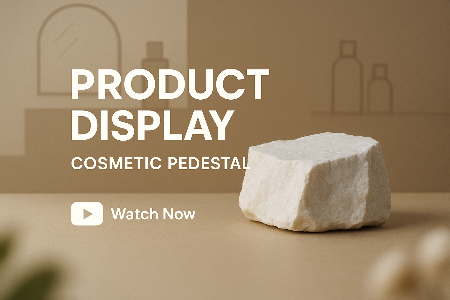 Minimalist Product Display for Cosmetics Featuring Natural Stone Pedestal