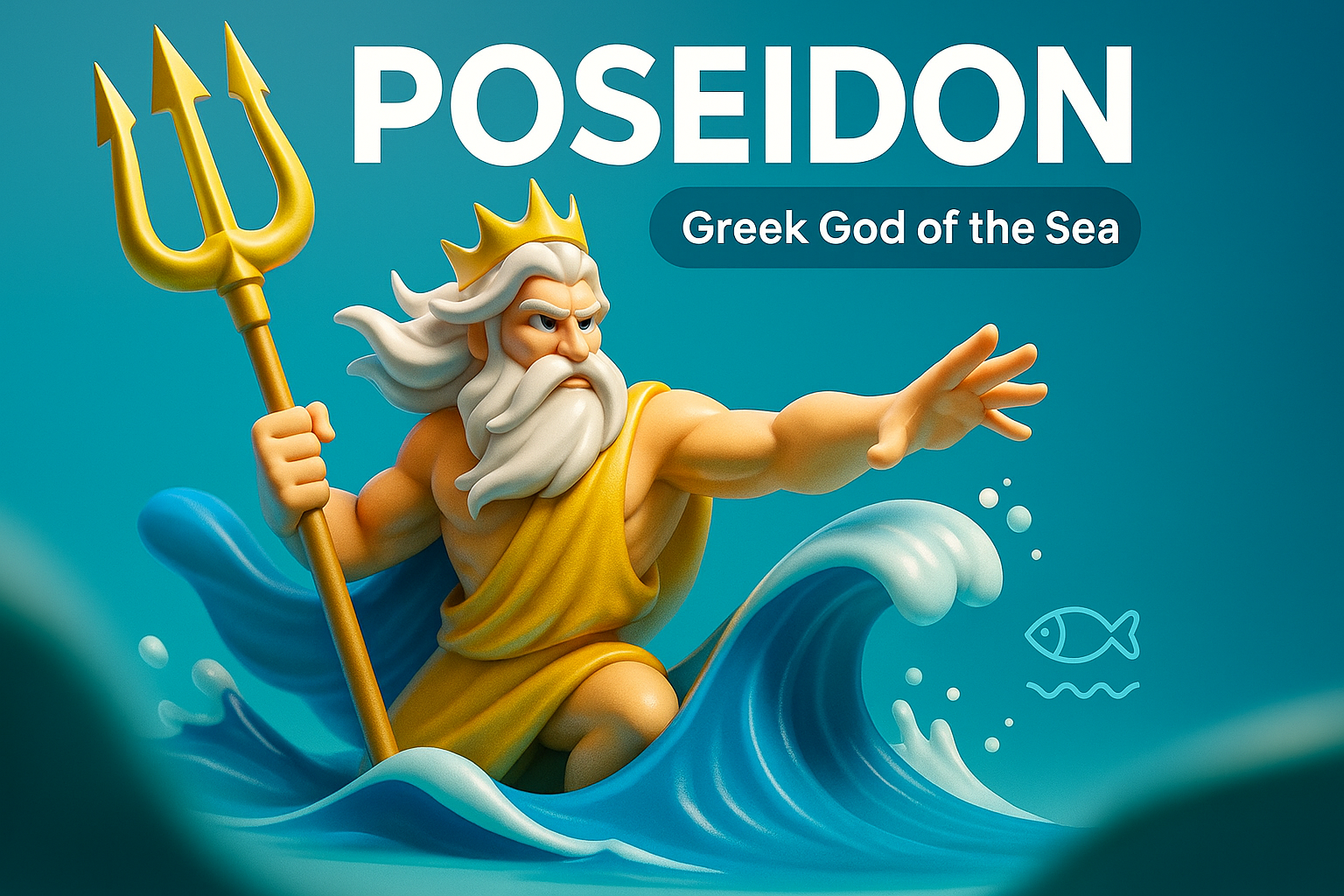 Dynamic 3D Illustration of Poseidon, Greek God of the Sea