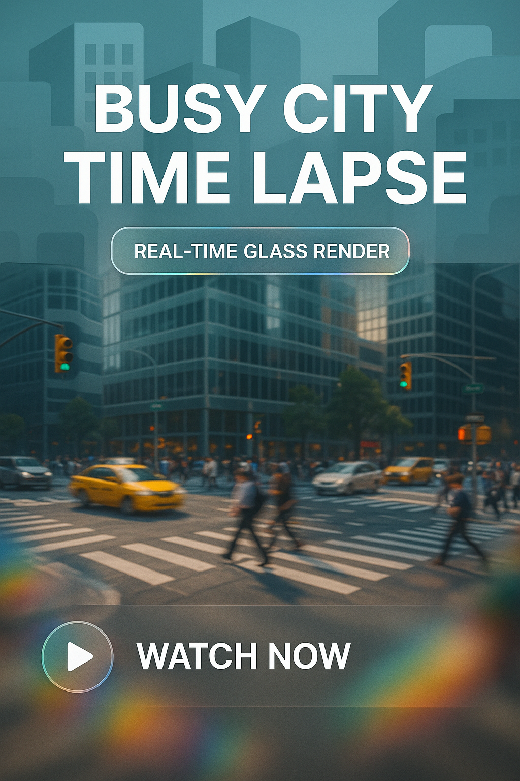 Engaging promotional graphic for a city time lapse video featuring a blurred urban background and modern design elements, ideal for social media or video platforms.