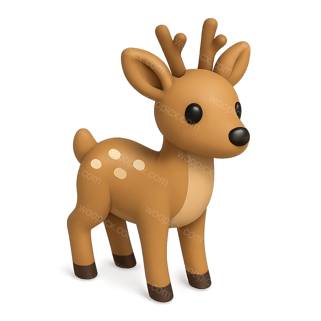 /Premium/Collection: /by davooda/Type: PNG/This image features a cute, stylized 3D roe deer icon depicted in a three-quarter view. The character has a soft, rounded shape with a warm brown color and distinctive features like large eyes and small antlers.