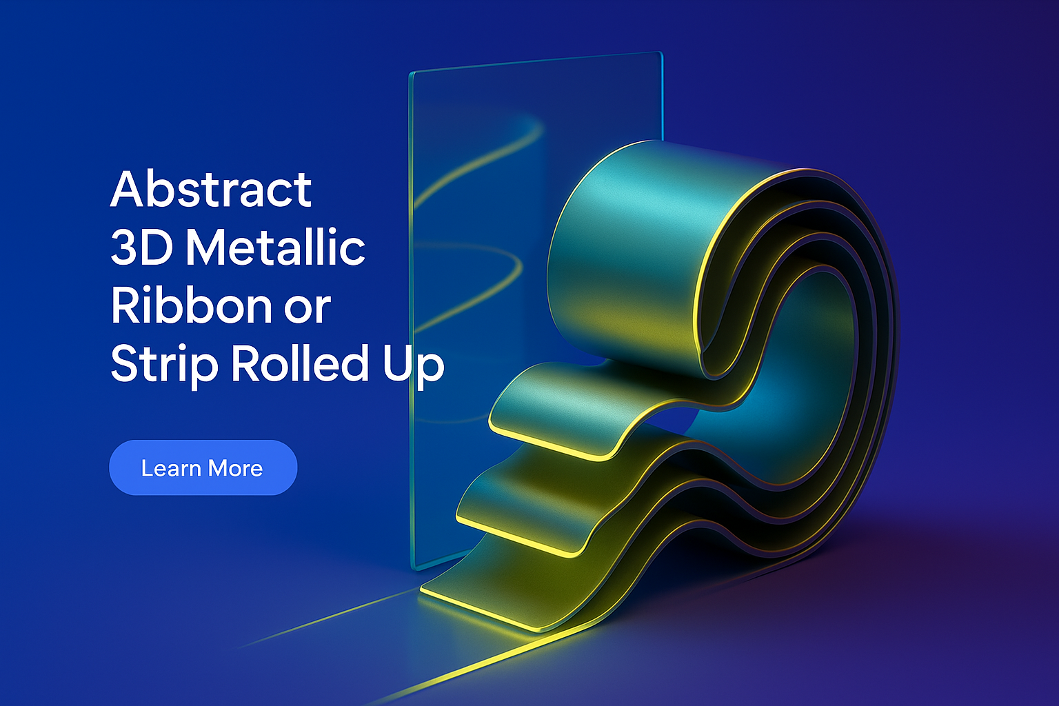 /Collection: /by davooda/Type: PNG/An abstract 3D metallic ribbon is artistically rolled up, showcasing layers of light yellow-green and blue. Neon accents illuminate the scene, creating a striking atmosphere.