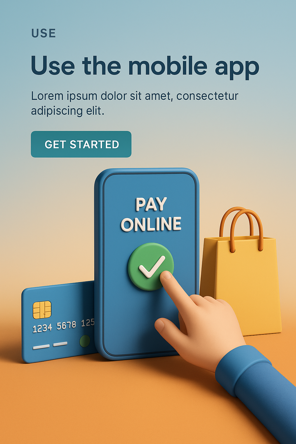 A zoomed-out 3D illustration showcasing a hand interacting with a mobile app for online payments. The background features a smooth gradient transitioning from light to solid colors, enhancing the visual appeal.