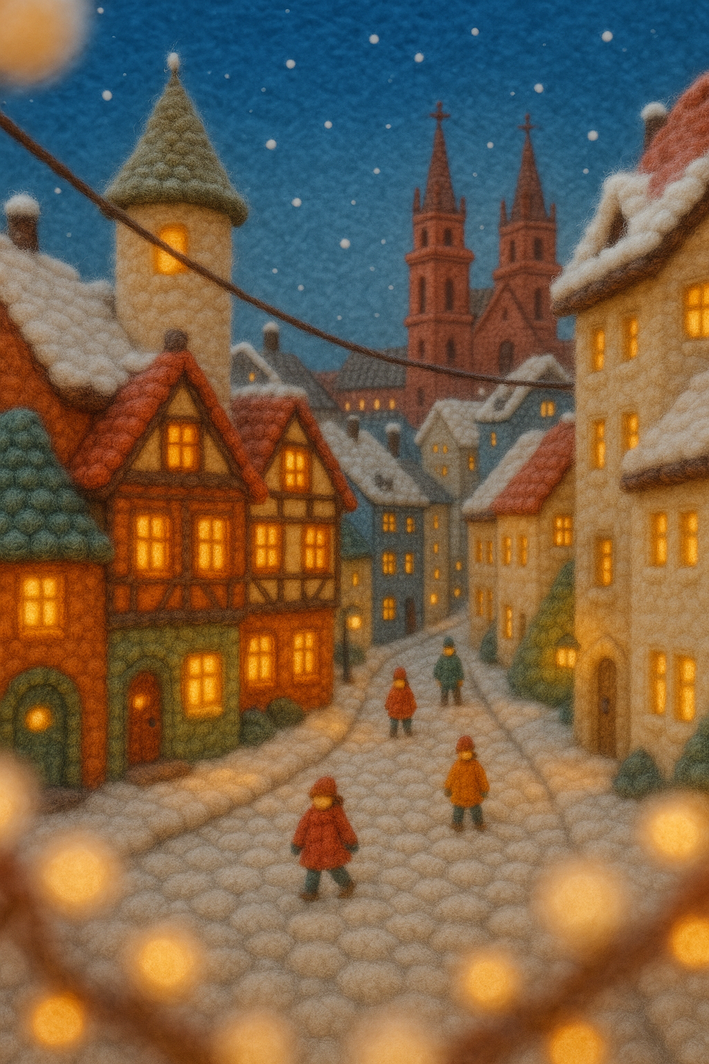 Whimsical Woolen Scene of Basel's Old Town