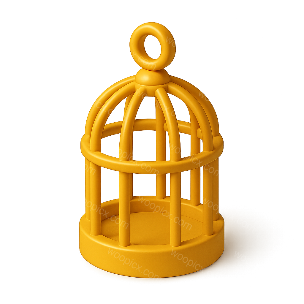 /Premium/Collection: /by davooda/Type: PNG/A visually appealing 3D icon of a yellow bird cage, rendered in a three-quarter isometric view. The design features smooth curves and a volumetric appearance against a subtle gradient background.