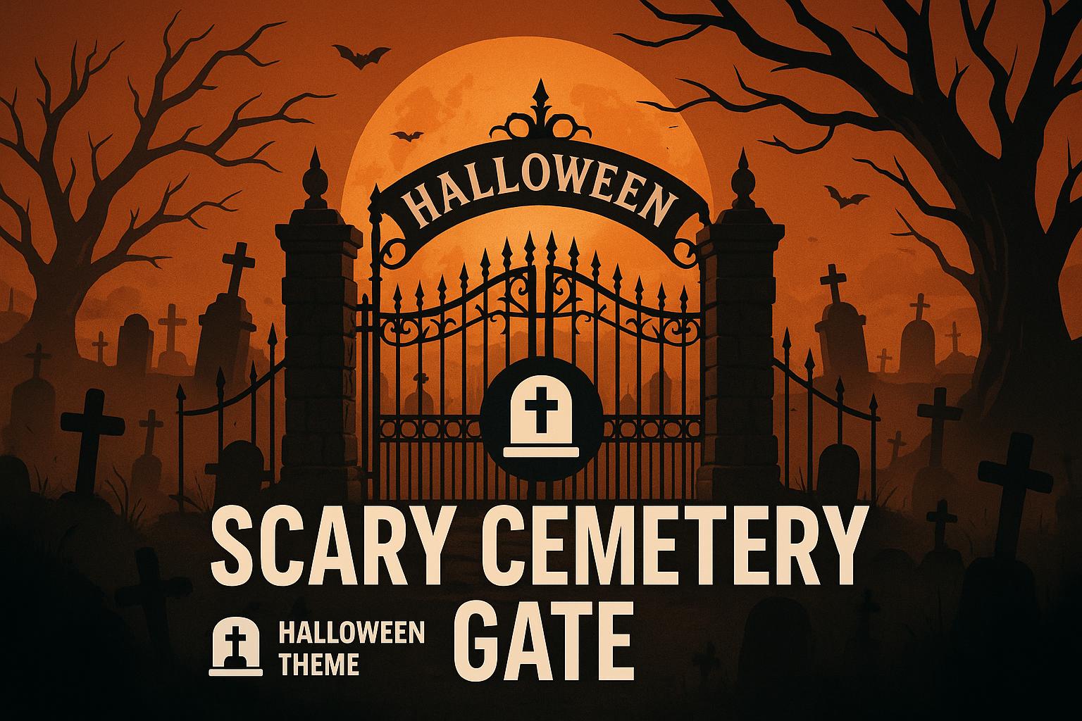 Halloween Theme Graphic Featuring a Scary Cemetery Gate