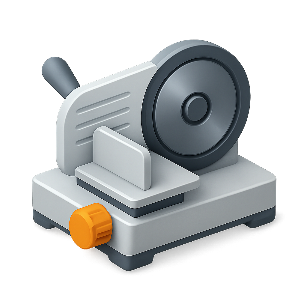 An isometric 3D design of a slicer icon featuring a transparent background. The slicer showcases a three-quarter view with a volumetric and modern aesthetic.