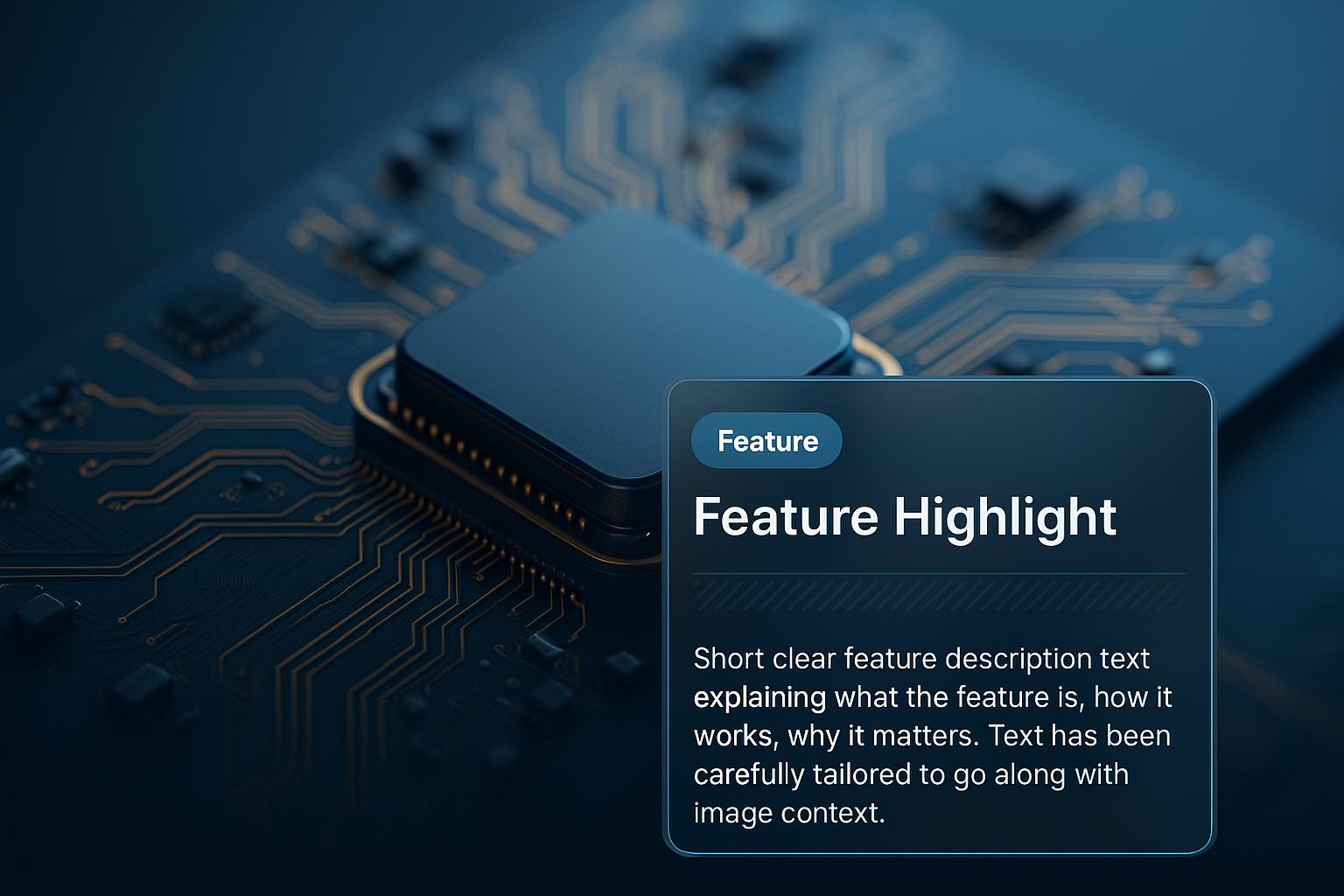 /Collection: /by davooda/Type: PNG/A close-up view of a microchip embedded in a circuit board, featuring a highlighted text box that describes its significance. The design emphasizes technology and innovation.