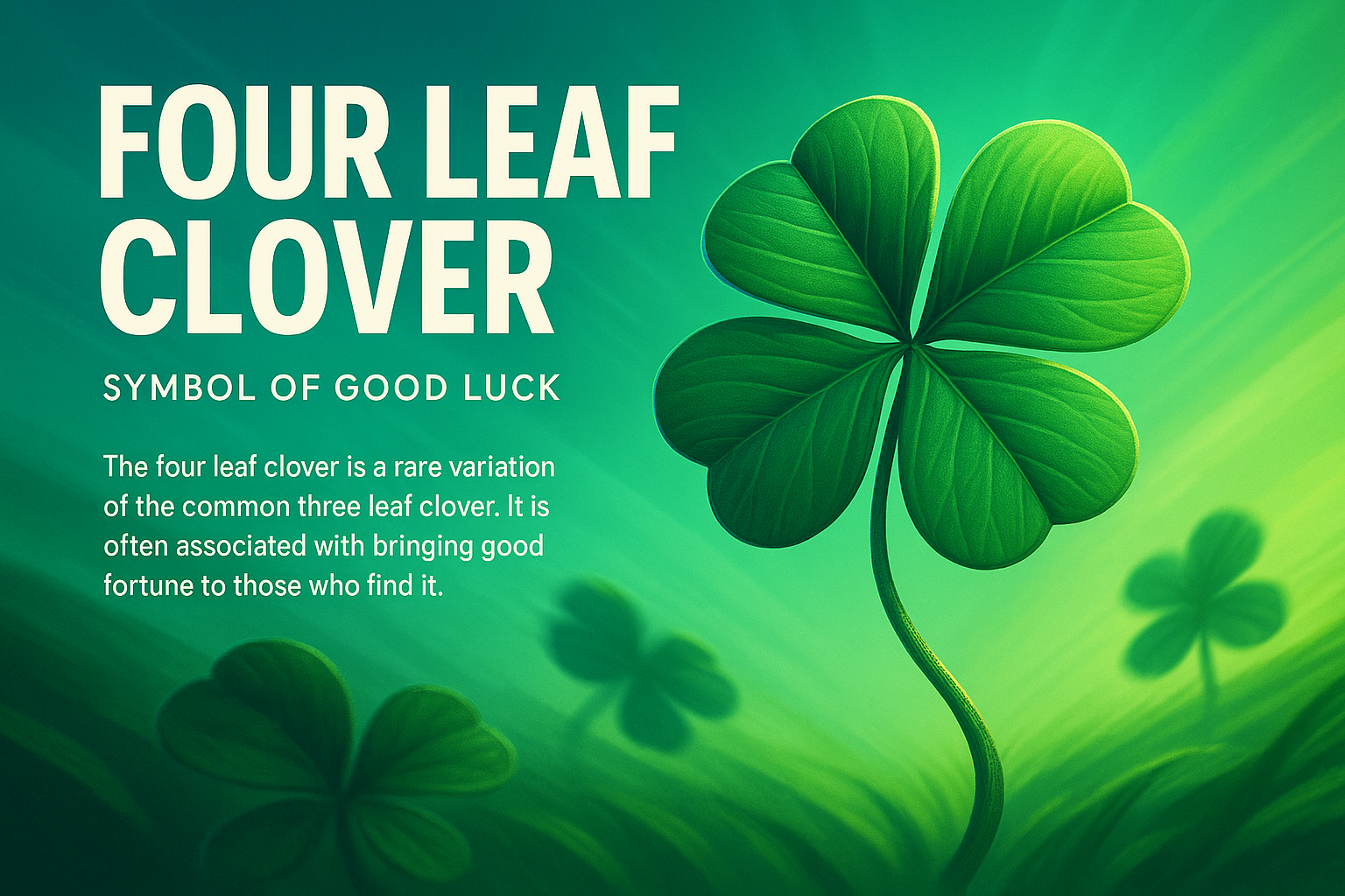 A visually striking illustration of a four leaf clover set against a rich gradient background. The design highlights the clover's significance as a symbol of good luck, with engaging text elements.
