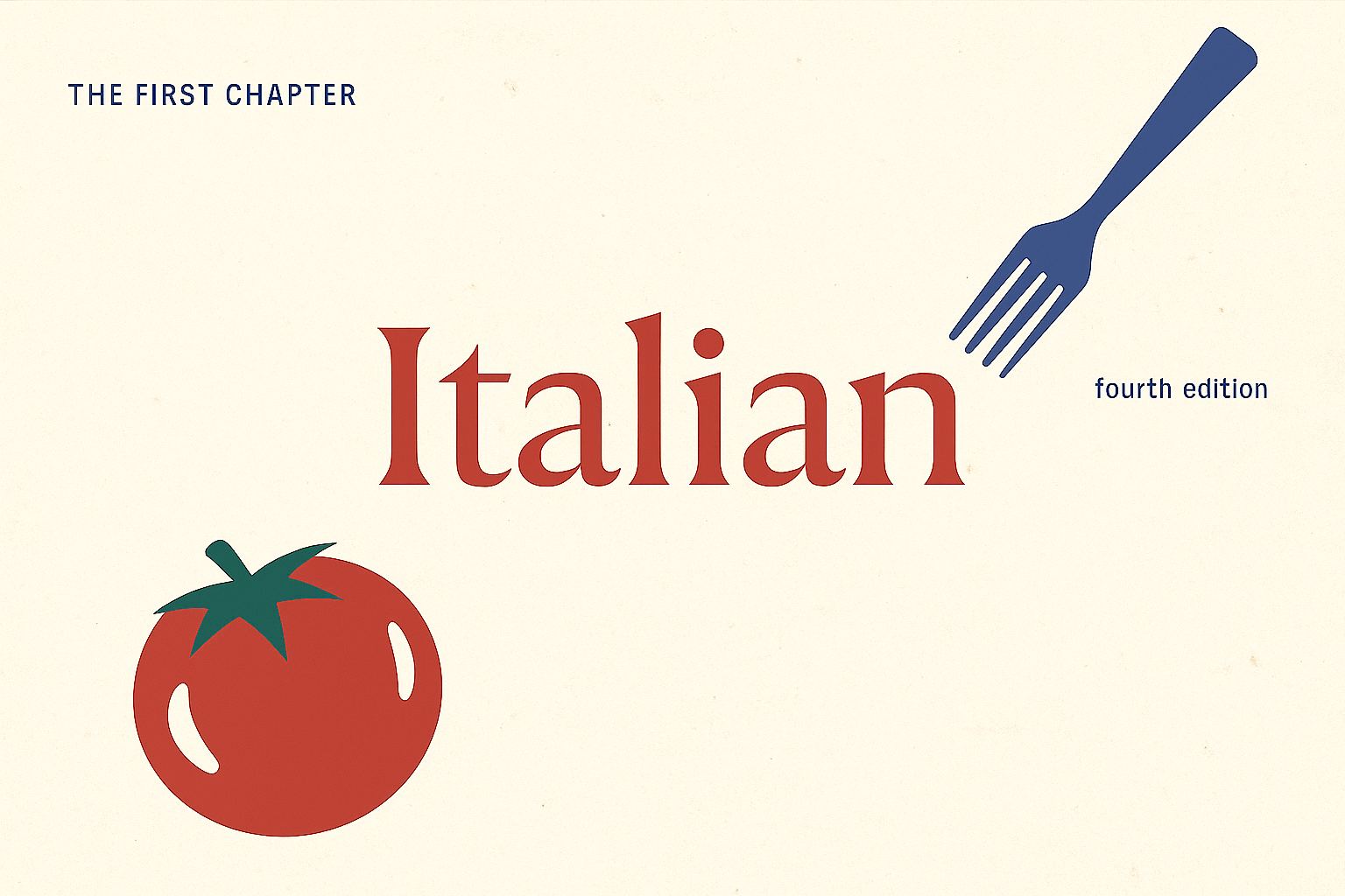 /Collection: /by davooda/Type: PNG/A book cover featuring the title 'Italian' with a red tomato and a blue fork illustration, indicating a focus on Italian cuisine. The design is simple yet effective.