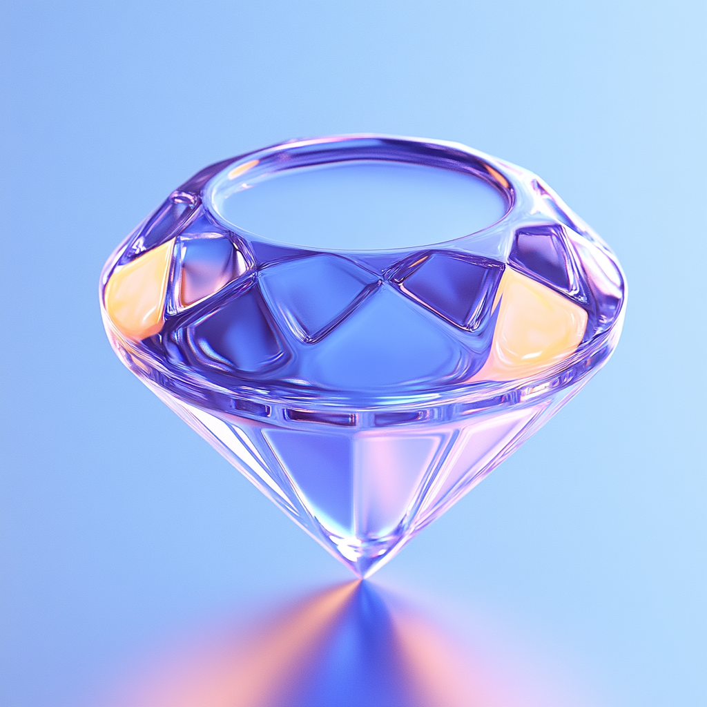 A visually striking 3D rendering of a diamond, showcasing its intricate facets and vibrant color transitions. Ideal for luxury branding or gemstone-related content.
