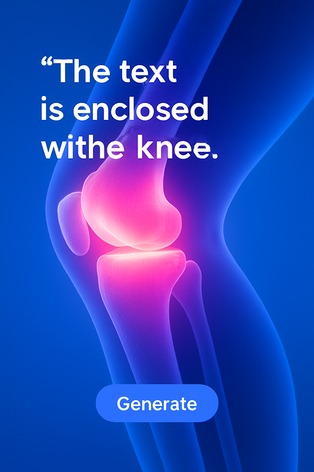 A knee highlighted with an intense neon pink glow against a solid blue background, emphasizing its structure and creating an atmospheric effect.