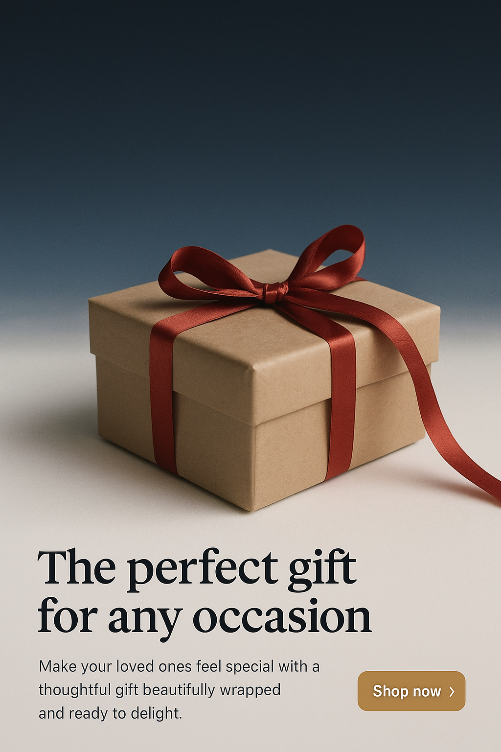 An elegantly wrapped gift box topped with a red ribbon against a gradient background, featuring a clear call to action and inviting text.