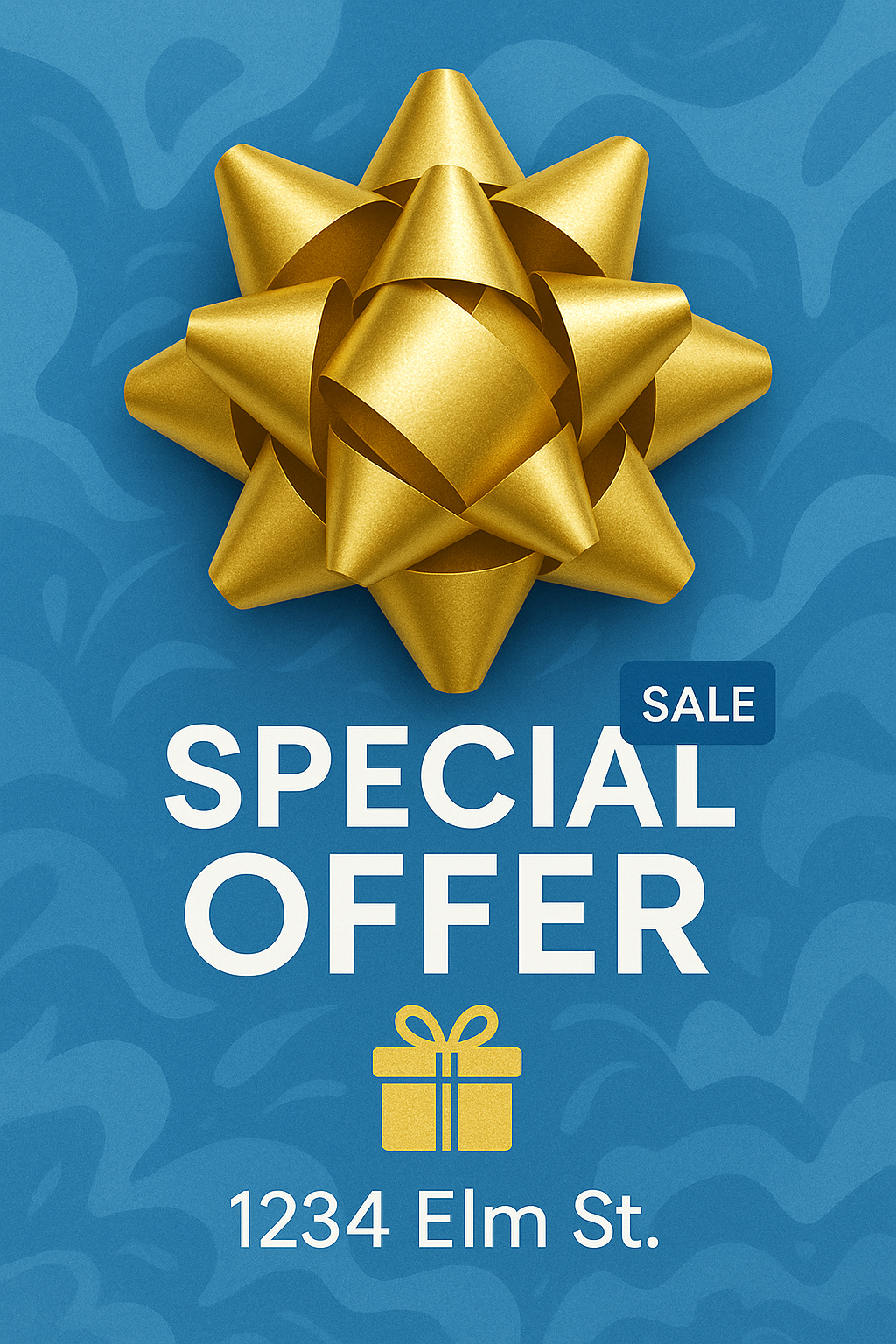Promotional Graphic Featuring a Gold Gift Bow and Sale Announcement