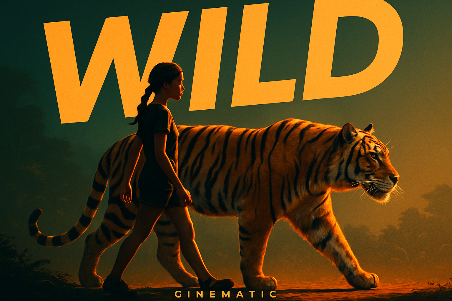 Girl Walking with a Tiger in a Dramatic Jungle Scene