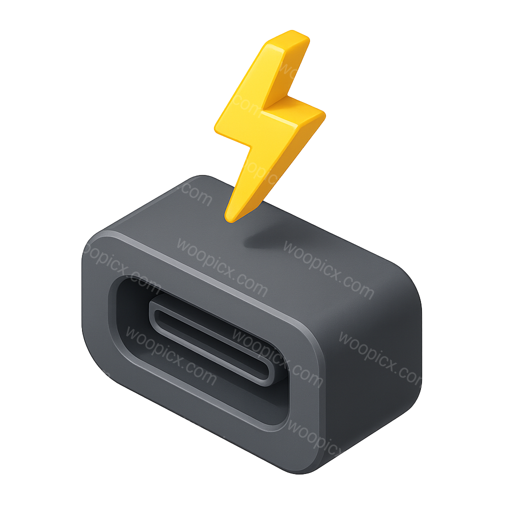 /Premium/Collection: /by davooda/Type: PNG/A sleek 3D icon representing a Thunderbolt 4 port, featuring a stylized lightning bolt above a rectangular connector. The design has a transparent background and a three-quarter view, emphasizing its isometric and volumetric qualities.