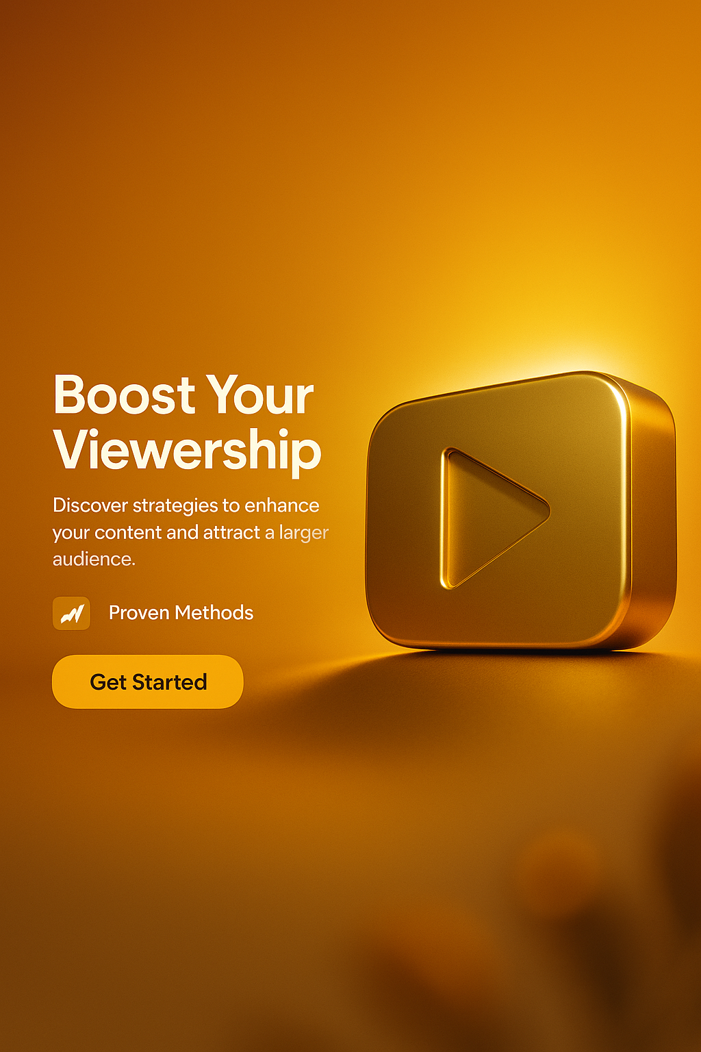 /Collection: /by davooda/Type: PNG/This is a promotional social media post designed to attract viewers to content. It features a golden play button and a warm color palette, targeting content creators.