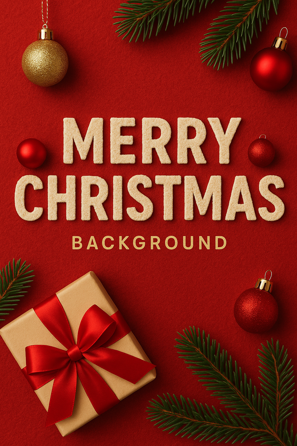 Vibrant Christmas-themed background featuring decorative elements like ornaments, gift boxes, and text. Ideal for holiday promotions and greeting cards.