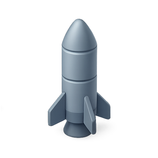 Stylized 3D rocket icon rendered in gray, suitable for technology or innovation-themed designs. This graphic can be used in digital applications, presentations, or educational materials.