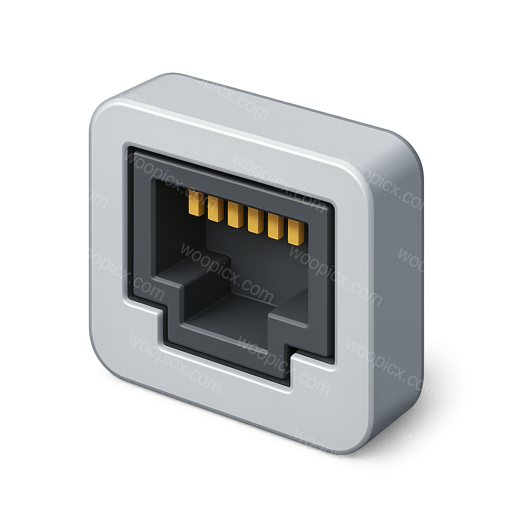 /Premium/Collection: /by davooda/Type: PNG/A detailed 3D representation of a network port icon, featuring a transparent background and isometric view. The design highlights the port's structure with a sleek, volumetric appearance.