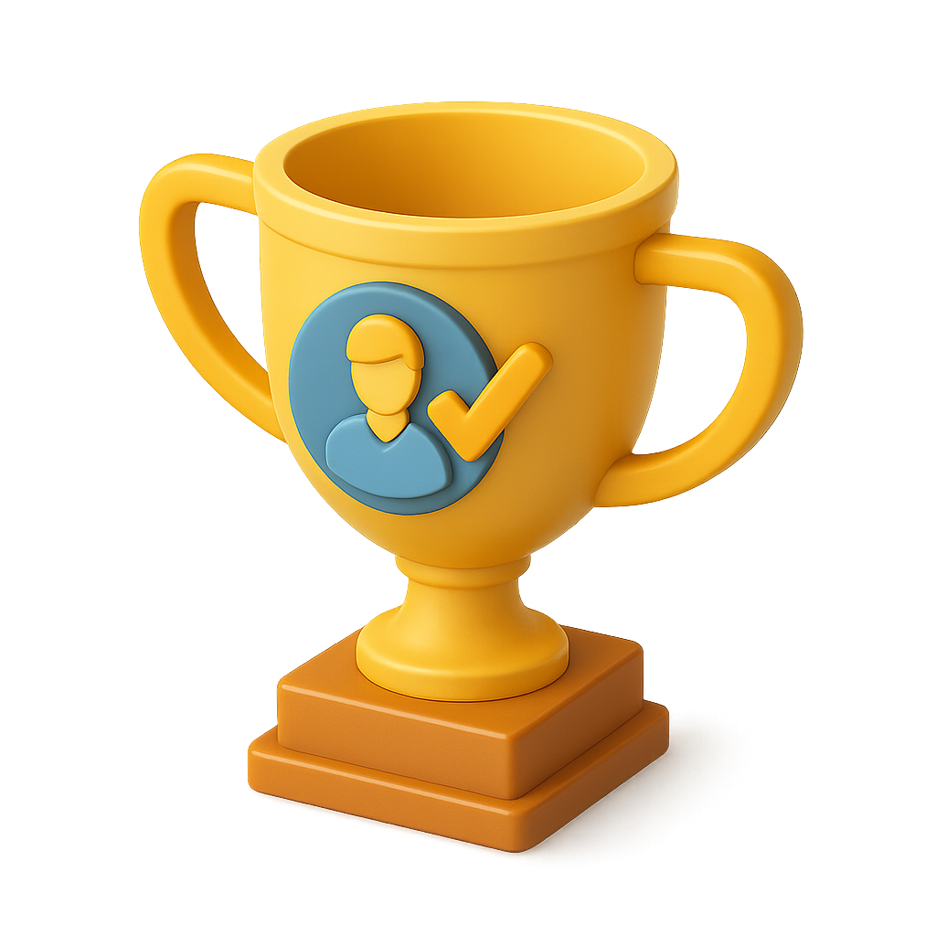 3D Customer Success Trophy Icon in Vibrant Colors