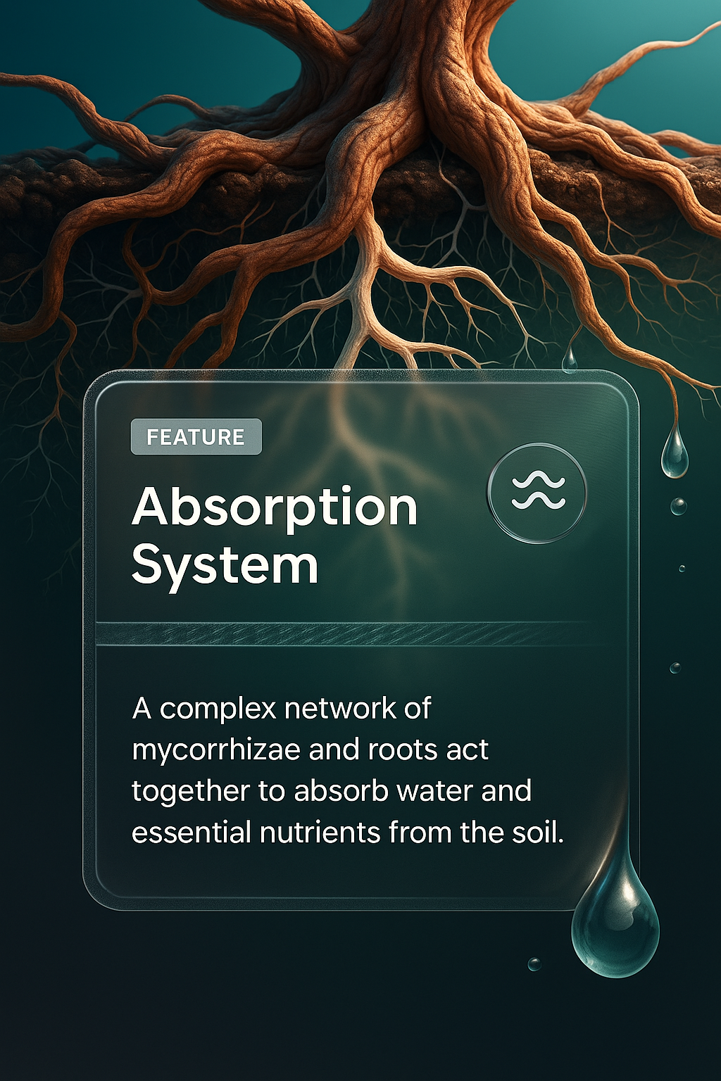 /Collection: /by davooda/Type: PNG/A detailed visualization of an underground tree root system, showcasing mycorrhizae and water absorption. The design features a gradient background and integrated text elements.