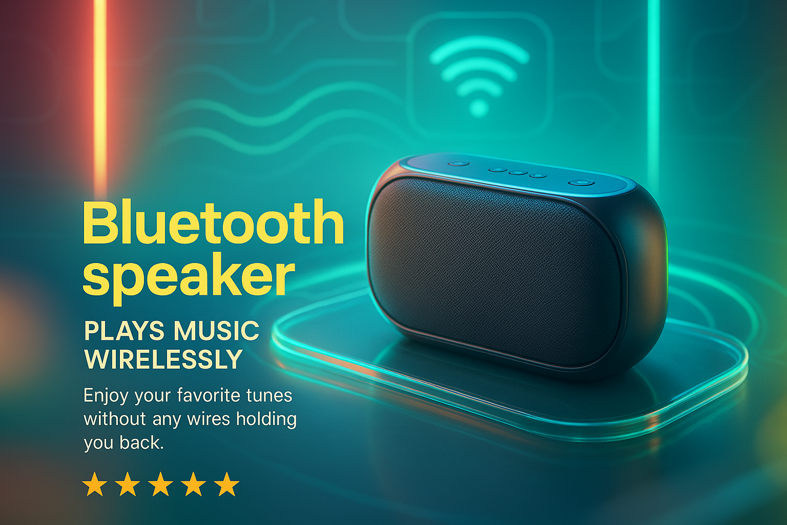 Stylish product image featuring a Bluetooth speaker with a glowing background, ideal for tech promotions and online marketing.