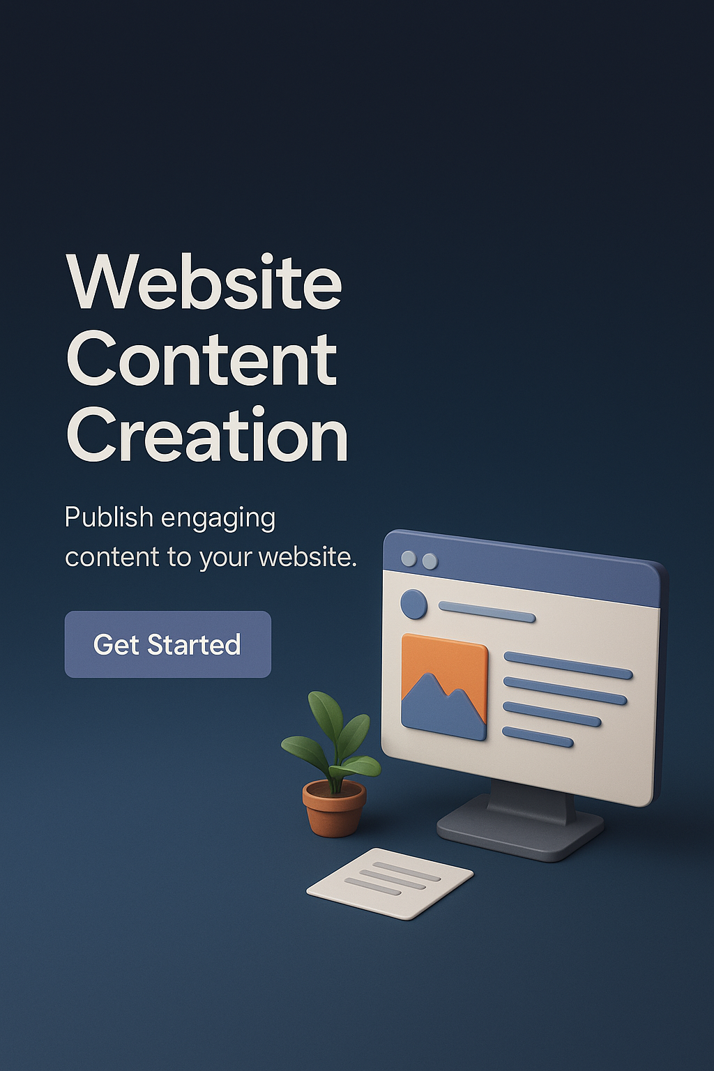 A zoomed-out 3D scene showcasing a computer monitor with content creation elements. The dark gradient background enhances the vibrant visuals of a small plant and design components.