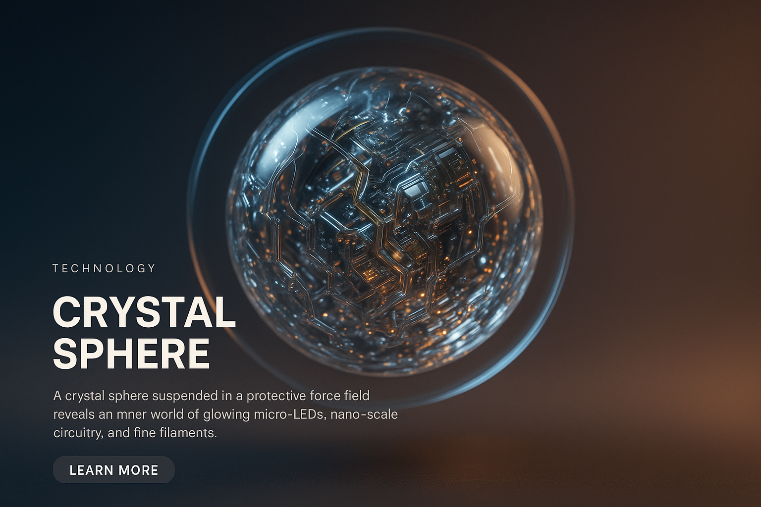 /Collection: /by davooda/Type: PNG/A stunning close-up of a crystal sphere encased in a protective force field, showcasing an intricate inner world of glowing micro-LEDs and fine mechanical filaments, illuminated by soft lighting.
