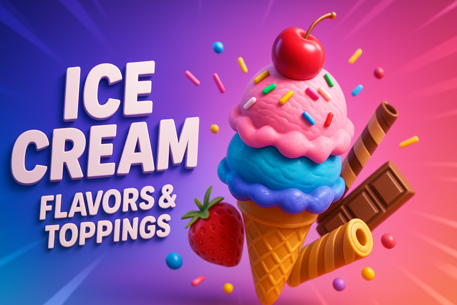 Vibrant Ice Cream Menu Featuring Flavors and Toppings