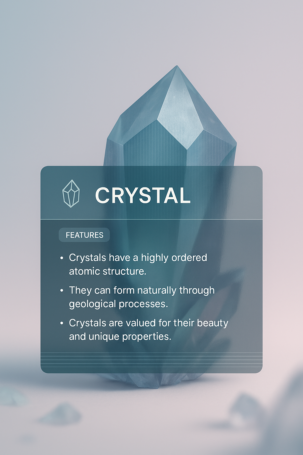 A beautifully rendered 3D crystal illustration set against a soft gradient background. An informative overlay provides details about crystal features, enhancing the visual appeal.