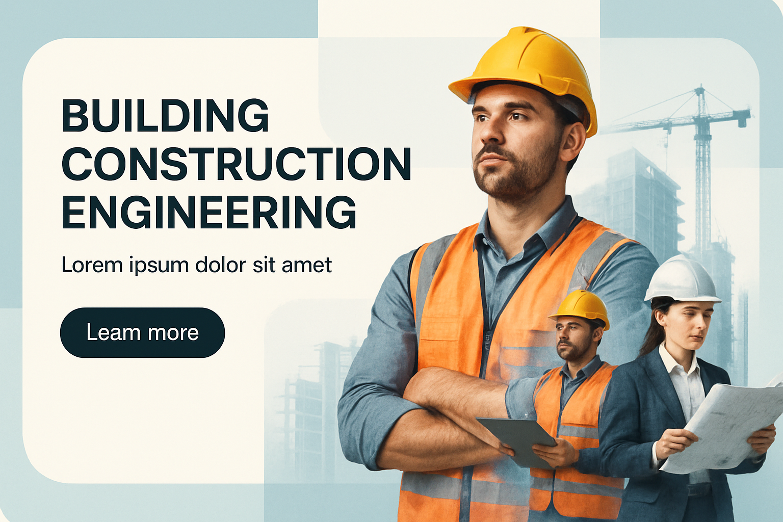 Modern Construction Design with Engineers and Bold Typography
