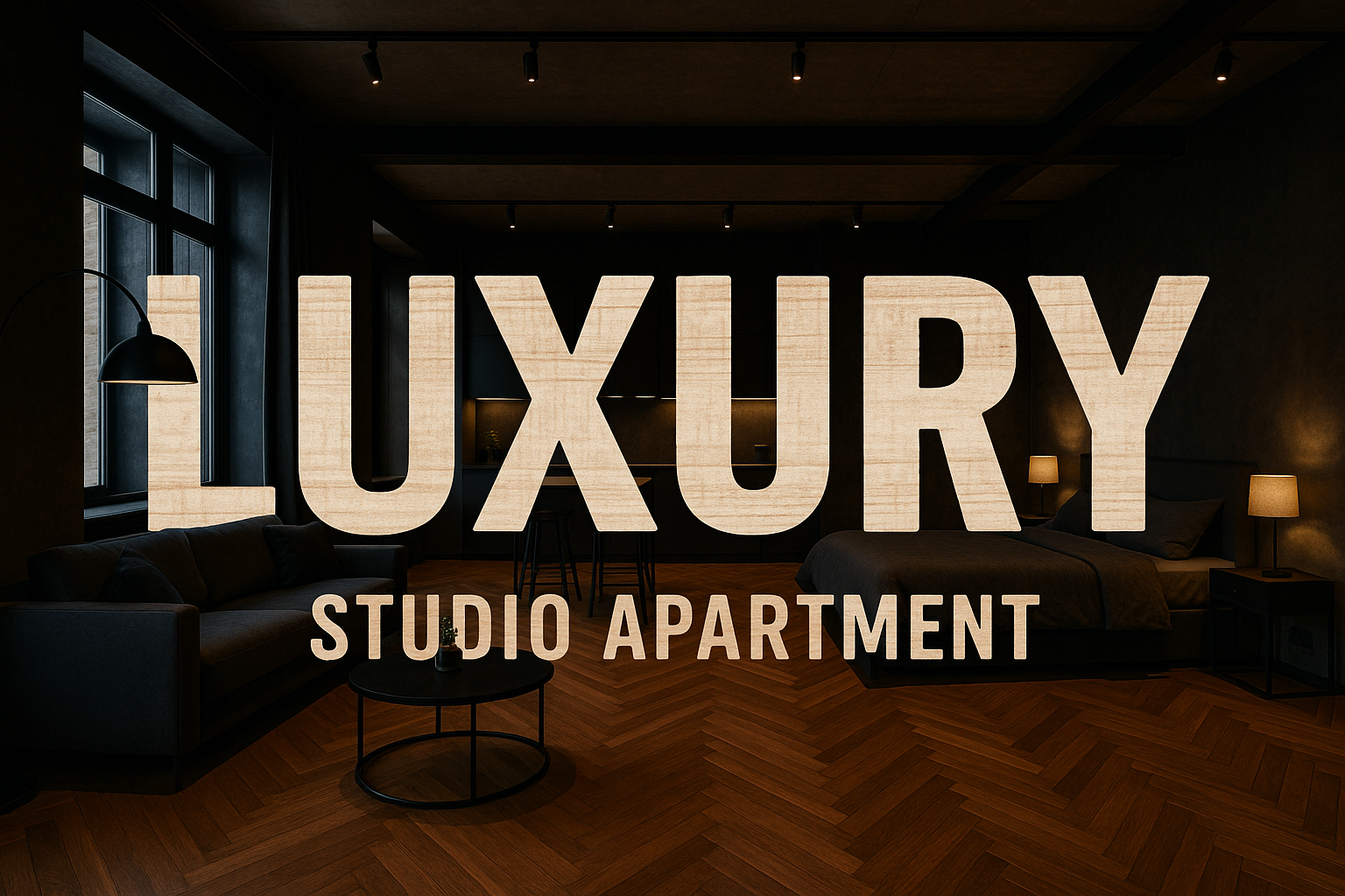Luxury Studio Apartment Promotional Graphic with Modern Design