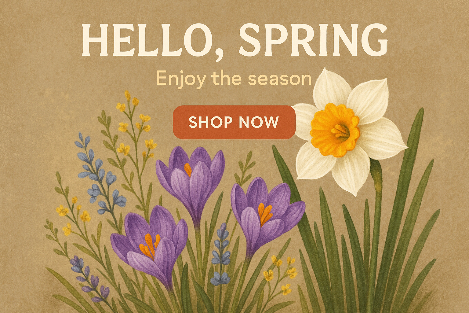 Spring-Themed Promotional Banner with Floral Illustrations
