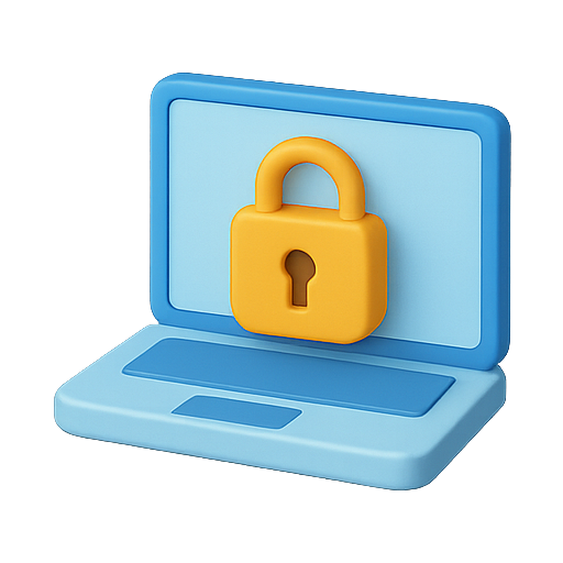 A modern 3D illustration featuring a laptop with a padlock symbol, representing digital security and online privacy. Ideal for tech-related graphics.