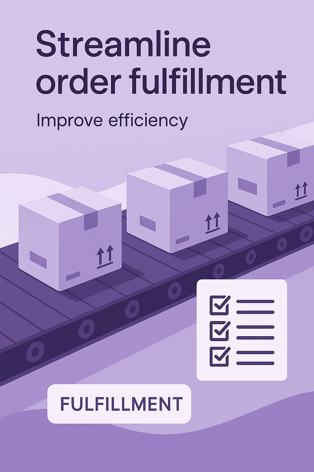 /Collection: /by davooda/Type: PNG/Illustrative graphic depicting the order fulfillment process, featuring boxes on a conveyor belt with checklist elements, suitable for logistics and e-commerce marketing.