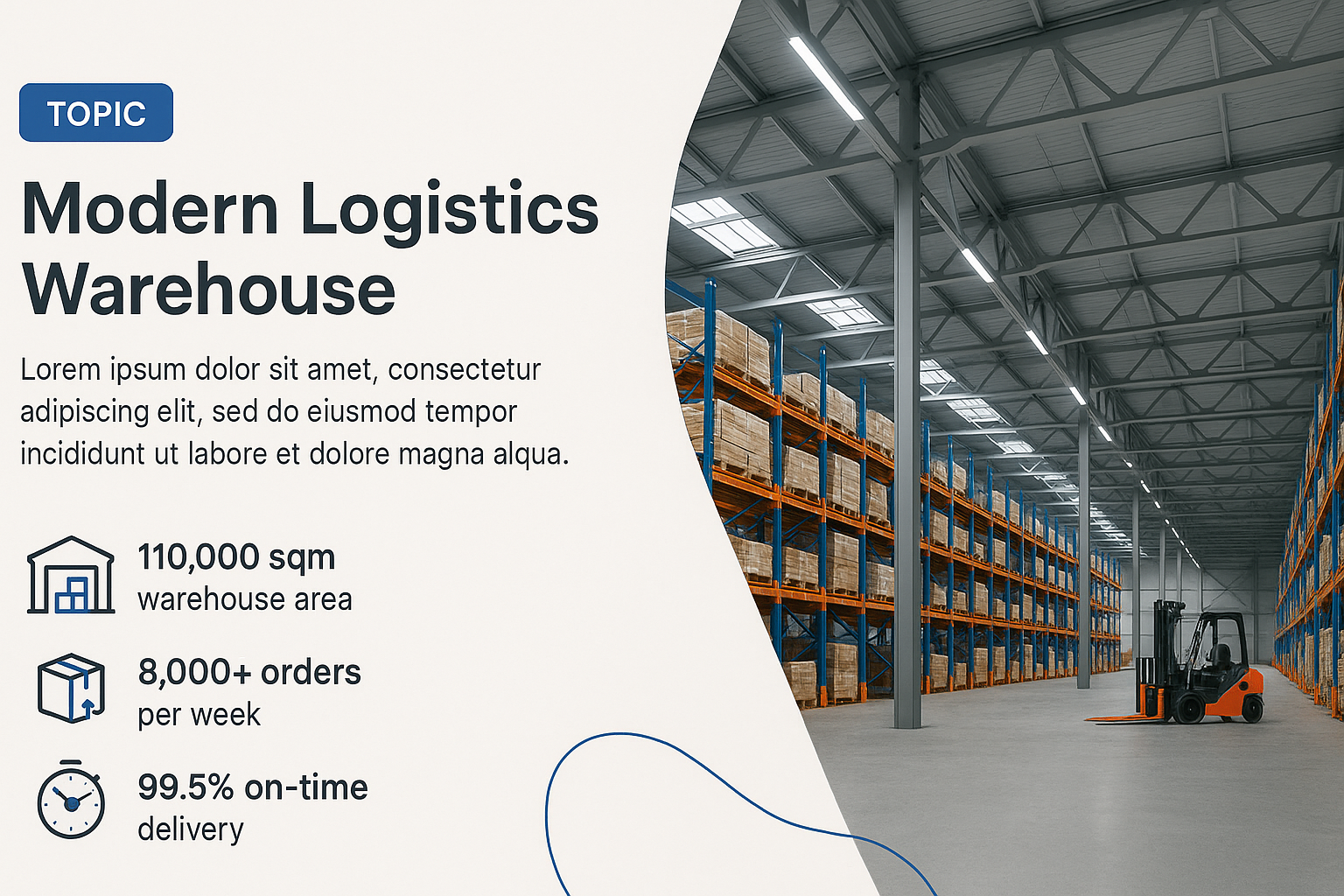 /Collection: /by davooda/Type: PNG/Informative graphic showcasing a modern logistics warehouse interior, featuring shelves and a forklift, ideal for industry presentations and marketing materials.