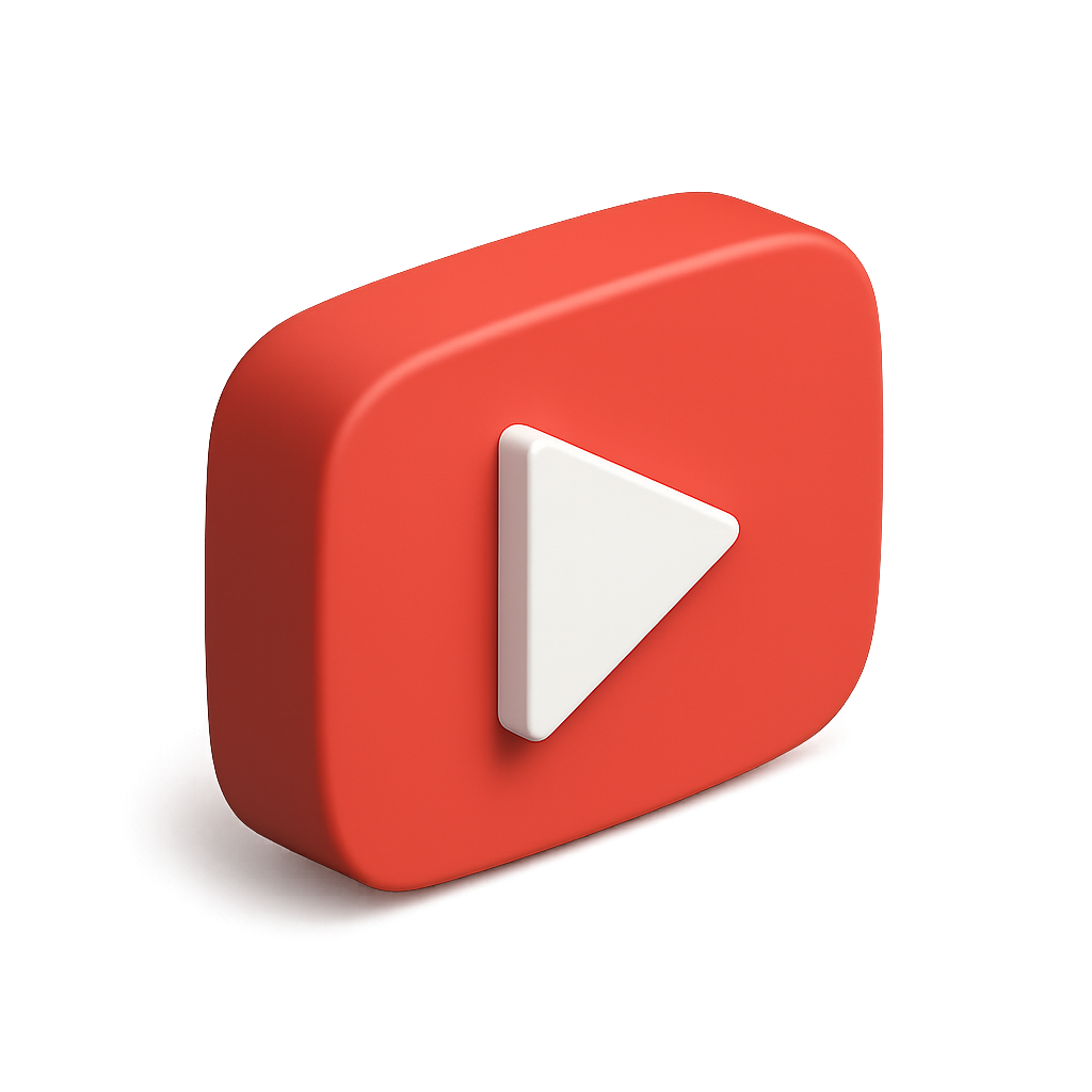 A vibrant, three-dimensional representation of the YouTube play button icon, featuring a smooth red background and a white triangular play symbol, all set against a subtle gradient backdrop.