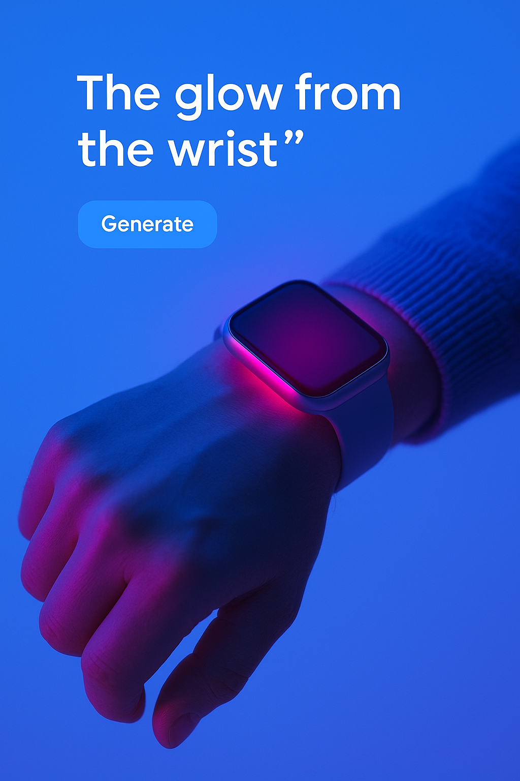 Vibrant Neon Glow from a Wristwatch on Blue Background