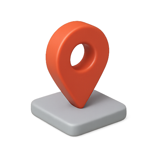 Stylized 3D location marker icon featuring an orange pin on a gray base, ideal for use in navigation applications and maps.