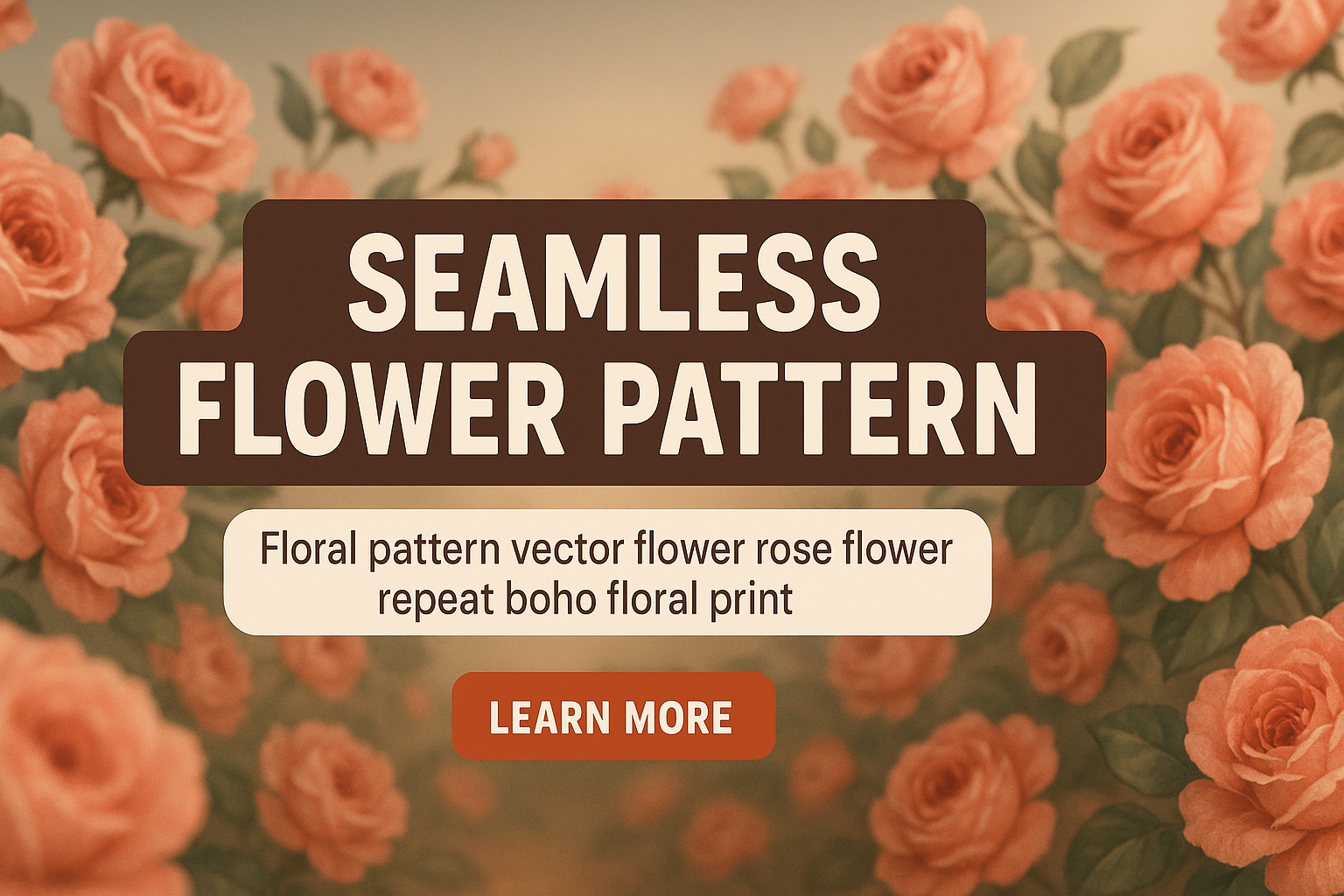 /Collection: /by davooda/Type: PNG/A seamless floral pattern graphic featuring rose flowers, designed for use in various applications like textiles, wallpapers, and digital backgrounds, with a boho aesthetic.