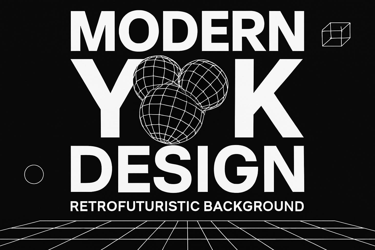 Bold graphic design featuring modern typography and retro-futuristic elements on a black background, suitable for digital art and design presentations.