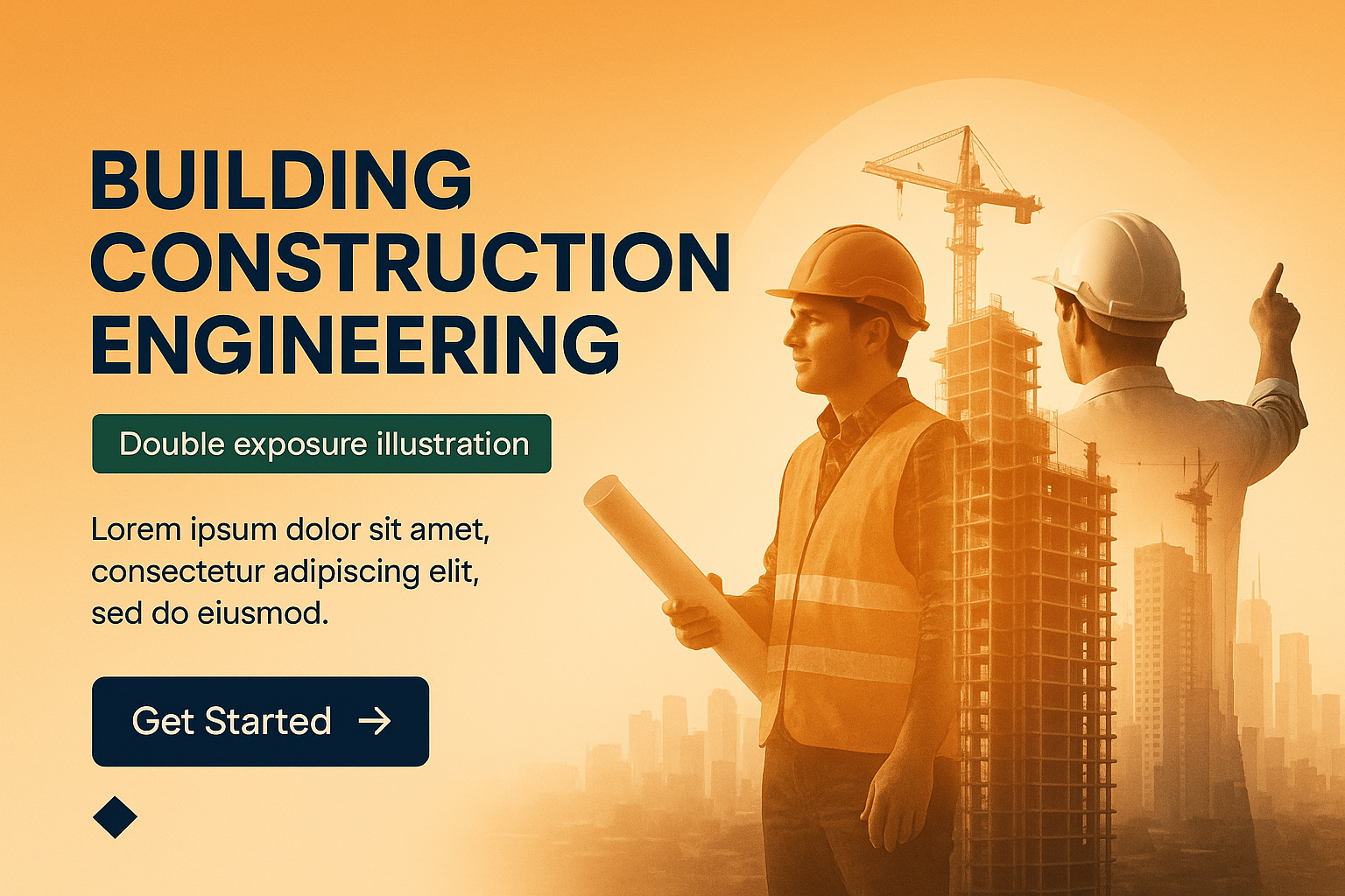 Digital Illustration of Building Construction Engineering with Double Exposure