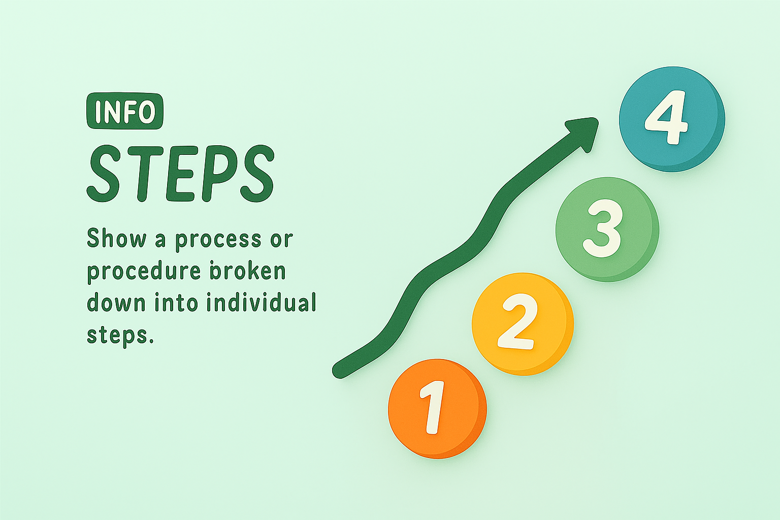 Colorful infographic graphic illustrating a sequential process with numbered steps, ideal for educational or instructional content.
